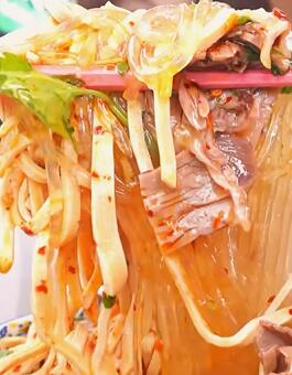 西安8元一碗的红油米线路边摊,6元一个大满贯夹馍